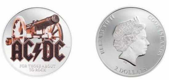 The Cook Islands, a South Pacific nation with political links to New Zealand, has released new AC/DC commemorative coins, including a two-dollar coin based on “For Those About To Rock (We Salute You)” and a ten-dollar coin based on “The Razors Edge.” These are the latest coins in a series released by Liechtenstein’s CIT Coin Invest AG.