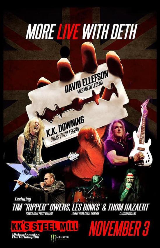 Former Judas Priest members K.K. Downing, Les Binks, and Tim “Ripper” Owens will be taking the stage for “a full-length set of Priest classics” at K.K.’s Steel Mill in Wolverhampton, UK on November 3. The show will find the trio joined by David Ellefson (Megadeth) and Thom Hazaert. Ellefson’s “Sleeping Giants” band and Blaze Bayley (ex-Iron Maiden) will open.