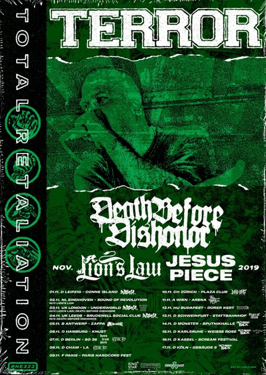 Death Before Dishonor have been added to Terror’s fall European tour. The band will be replacing Cro-Mags JM, who were forced to cancel due to John Joseph requiring surgery for a hernia. As previously reported, Lion’s Law and Jesus Piece will also take part in the trek.