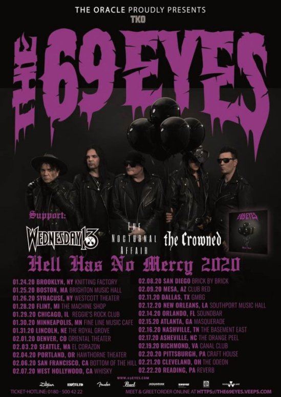 The 69 Eyes have announced a headlining U.S. tour. Wednesday 13, The Nocturnal Affair, and The Crowned will serve as support.