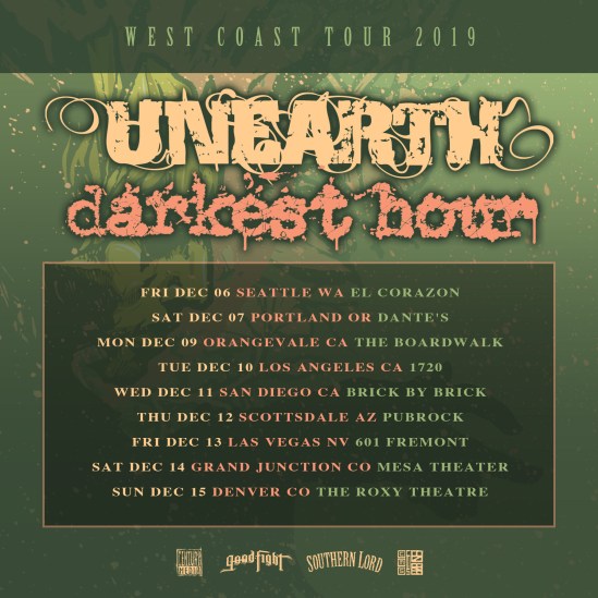 Unearth and Darkest Hour have announced a West Coast tour. Here’s the dates: