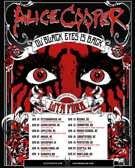 Alice Cooper has announced an April North American tour. Lita Ford will serve as support.