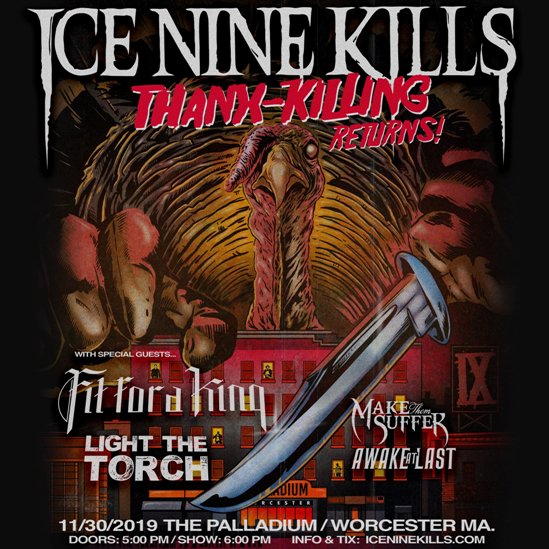 Ice Nine Kills have announced that they will be filming their “Thanx-Killing” show at The Palladium in Worcester, MA on November 30. Spencer Charnas had the following to say about the concert, which will also feature Fit For A King, Light The Torch, Make Them Suffer, and Awake At Last: