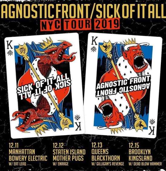 Sick Of It All and Agnostic Front have announced some December New York shows. Here’s the dates: