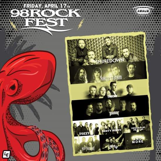 Shinedown, Halestorm, Theory Of A Deadman, Beartooth, Fozzy, Dirty Honey, New Years Day, Crobot, and Dinosaur Pile-Up will be performing at 98 Rock’s 98 Rockfest and WJRR’s Earthday Birthday. 98 Rockfest will take place at Amalie Arena in Tampa, Florida on April 17, while Earthday Birthday will take place at the Central Florida Fairgrounds in Orlando, FL on April 18.