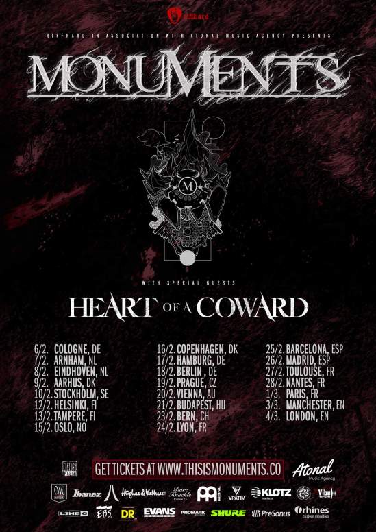 Monuments have announced a headlining European/UK tour. Heart Of A Coward will open.