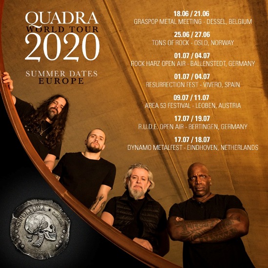 Sepultura will be hitting the European summer festival circuit in support of their new album “Quadra” (out February 7). Here’s the dates: