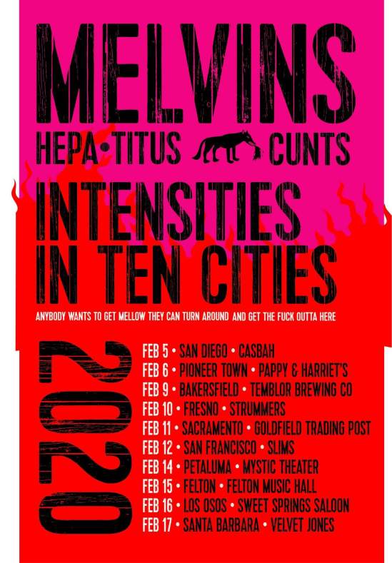 Melvins have announced a California tour with Hepa. Titus and Cunts. Here’s the dates: