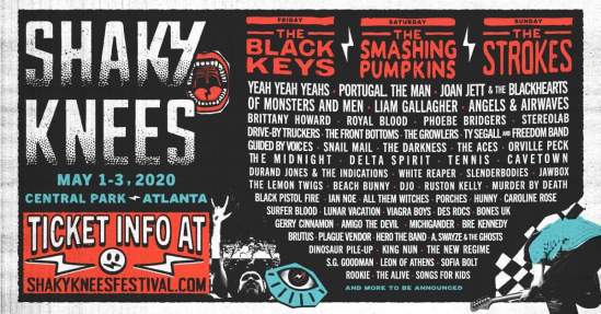 The lineup has been revealed for the 2020 Shaky Knees Festival. The event will take place at Central Park in Atlanta, GA on May 1-3 and it will feature: Smashing Pumpkins, The Strokes, The Black Keys, Joan Jett & The Blackhearts, Royal Blood, The Darkness, Angels & Airwaves, Dinosaur Pile-Up, All Them Witches, White Reaper, Des Rocs, Amigo The Devil, Bones UK, and more.