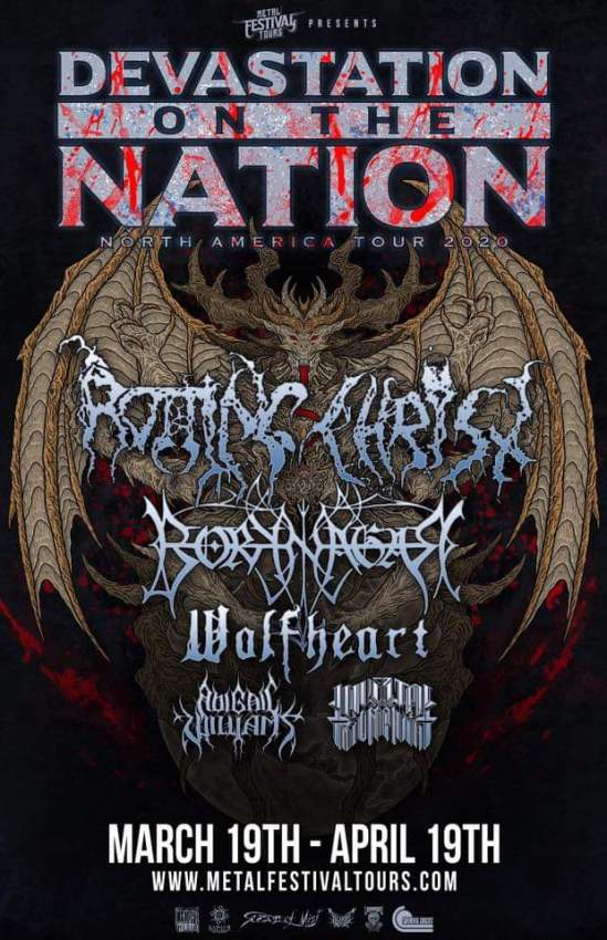 Rotting Christ, Borknagar, Wolfheart, Abigail Williams, and Imperial Triumphant have been confirmed for the 2020 Devastation On The Nation Tour. That trek will run from March 19 to April 19, with exact dates set to be revealed on December 3. Tour founder Daniel DeFonce commented: