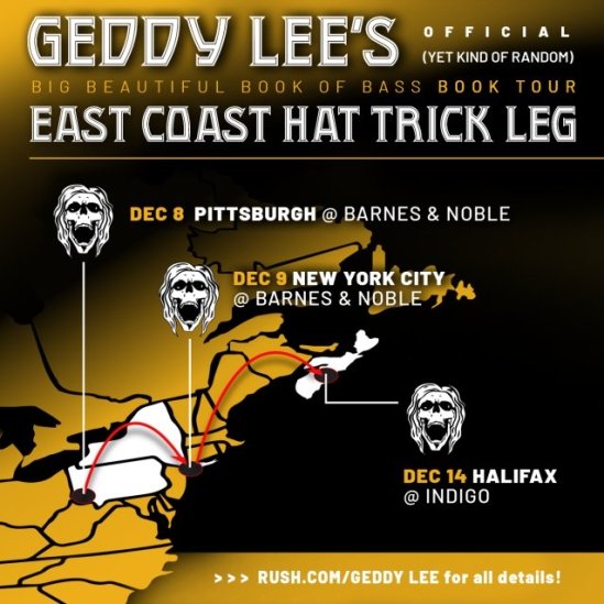 Rush’s Geddy Lee has announced three December “Geddy Lee’s Big Book Of Beautiful Bass” book signing events. You can find more info on those at rush.com. Here’s the dates: