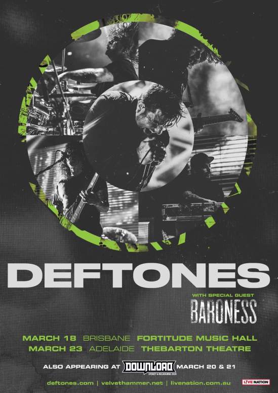 Deftones and Baroness have announced a couple shows together around the upcoming Australian Download Festival events. Here’s the dates: