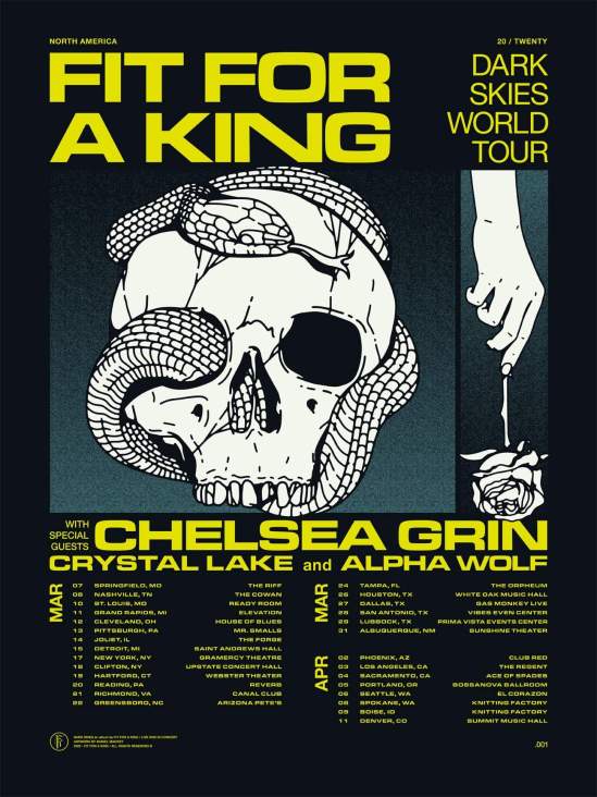 Fit For A King have announced a spring headlining tour. Chelsea Grin, Crystal Lake, and Alpha Wolf will open.