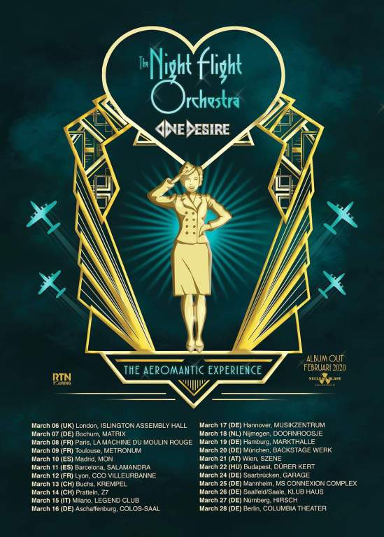 The Night Flight Orchestra (Soilwork, Arch Enemy, etc.) have announced a European/UK tour with One Desire. The band will be touring in support of their upcoming album, which is currently scheduled to be released on February 28.