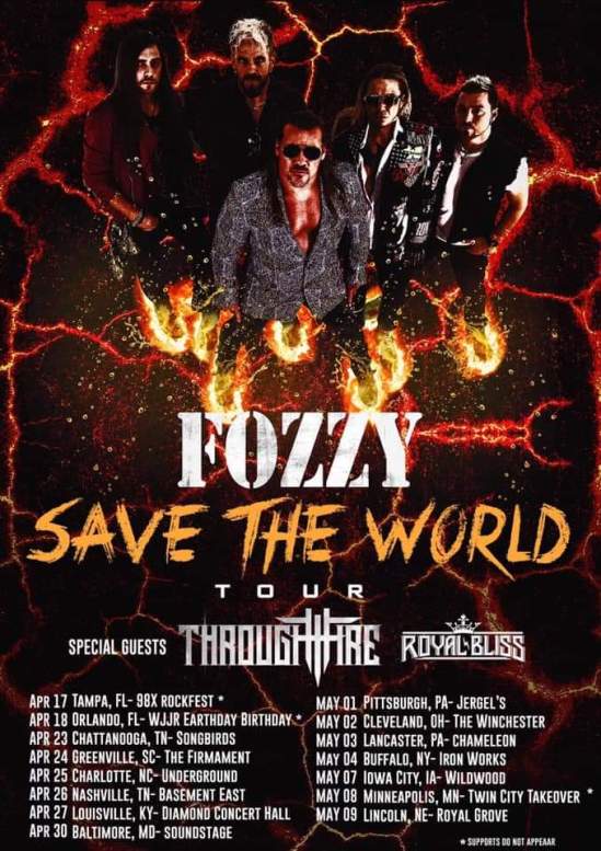 Fozzy have announced a spring headlining tour. Through Fire and Royal Bliss will open.