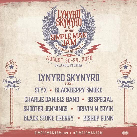 Lynyrd Skynyrd have announced that their 2020 “Simple Man Jam” festival will take place at the Rosen Shingle Creek hotel in Orlando, Florida on August 20-24. The event will find the band playing two separate sets and it will also feature performances from: Styx, Blackberry Smoke, Charlie Daniels Band, 38 Special, Shooter Jennings, Drivin’ N Cryin’, Black Stone Cherry, and Bishop Gun.
