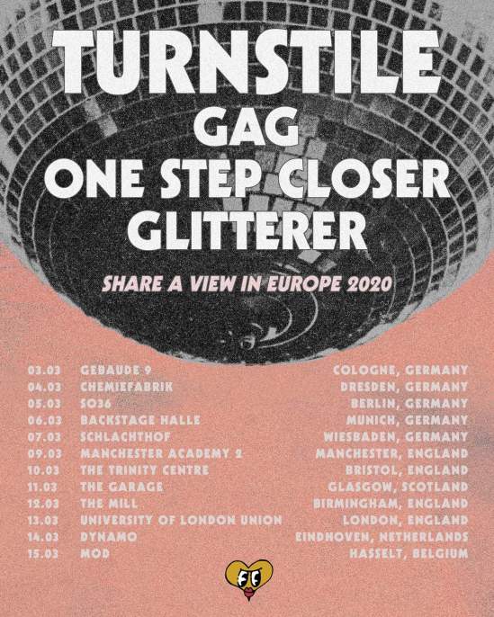 Turnstile have announced a European/UK tour with Gag, One Step Closer, and Glitterer. You can find the dates for that run below.