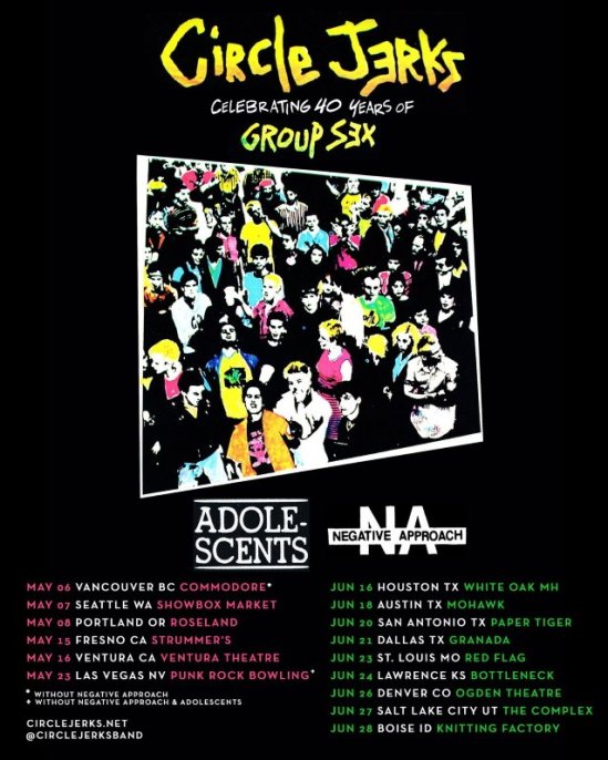 Circle Jerks will be celebrating the 40th anniversary of “Group Sex” on a headlining North American tour. Negative Approach and Adolescents will open.