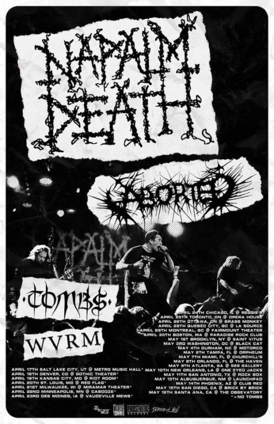 Napalm Death have announced a North American tour with Aborted, Tombs, and WVRM. You can find the dates for that run below.