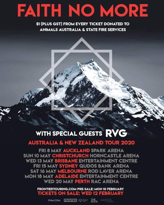 Faith No More have announced an Australian/New Zealand tour with RVG. Here’s the dates: