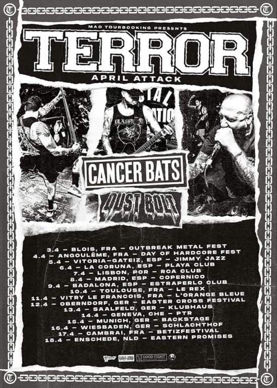 Terror have announced an April European tour. Cancer Bats and Dust Bolt will serve as support.
