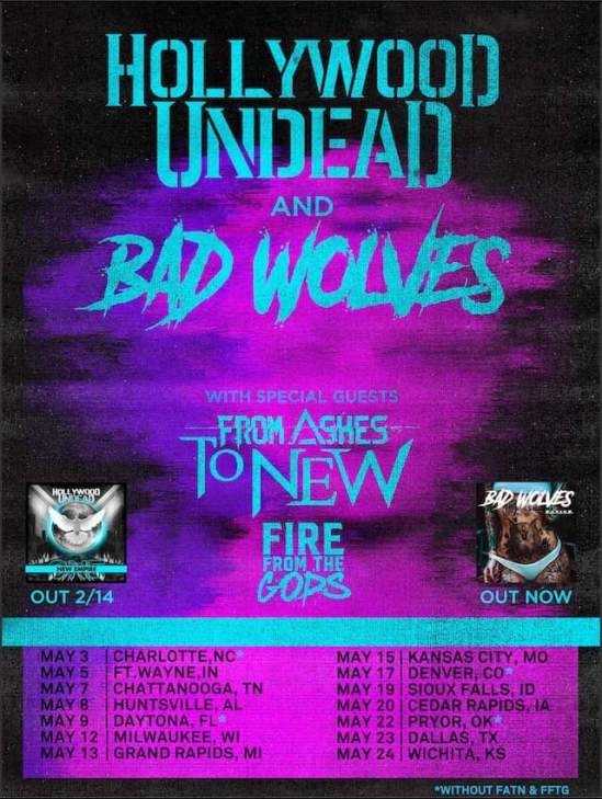 Hollywood Undead have announced a spring tour with Bad Wolves, From Ashes To New, and Fire From The Gods. These dates will take place around various festivals.