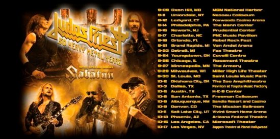 Judas Priest will be celebrating their 50th anniversary on a U.S. tour later this year. Sabaton will serve as support.