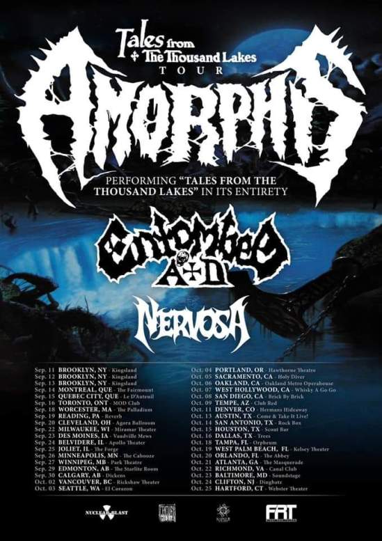 “We are really stoked to celebrate Amorphis 30th anniversary in North America this fall. And hell yes, it will be really special tour. Amorphis will perform ‘Tales From The Thousand Lakes‘ album in its entirety. Do not miss this run as we have a killer line-up with Entombed A.D. and Nervosa supporting.”