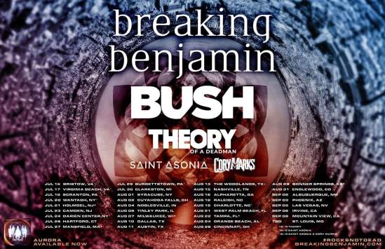 Breaking Benjamin have announced a summer U.S. tour. The band will also be joined by special guests Bush, Theory Of A Deadman, Saint Asonia, and Cory Marks.