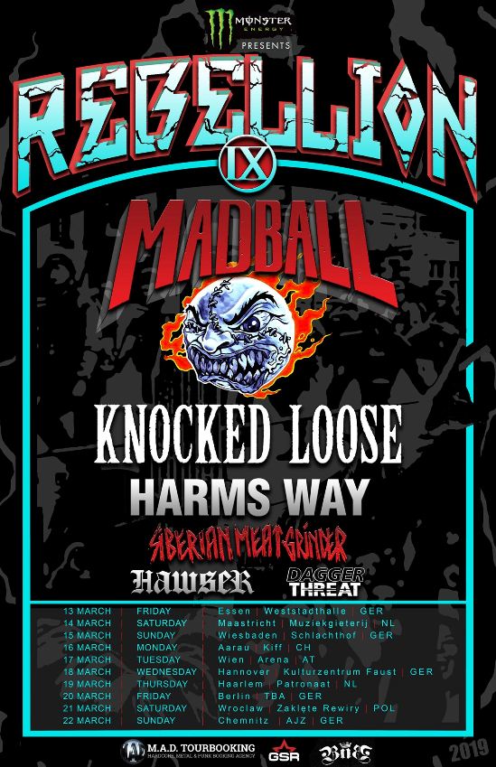 Madball, Knocked Loose, Harm’s Way, Siberian Meatgrinder, Hawser, and Dagger Threat have cancelled their European tour due to the coronavirus pandemic. The following statement was issued: