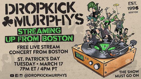 Dropkick Murphys have postponed their Boston St. Patrick Day shows due to the coronavirus pandemic. Despite this, the band will still be performing on the holiday (March 17) as part of a free livestream.
