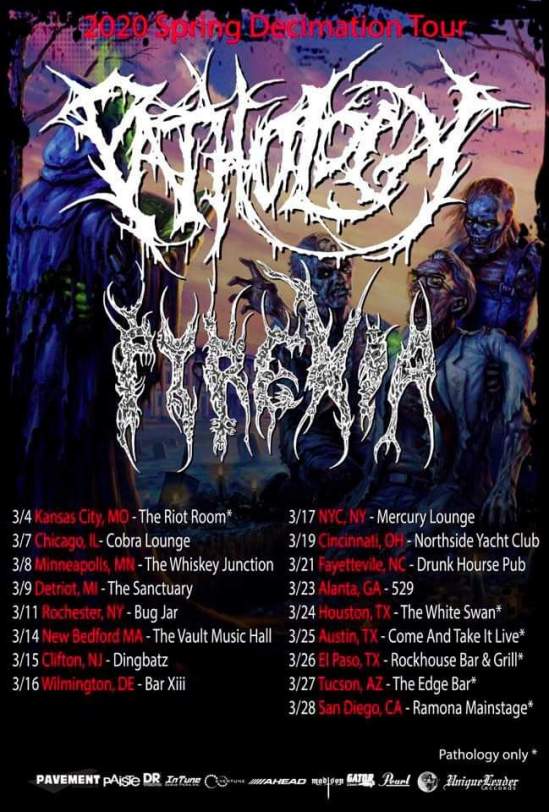 Pathology and Pyrexia have postponed their spring tour due to the coronavirus pandemic. The band commented: