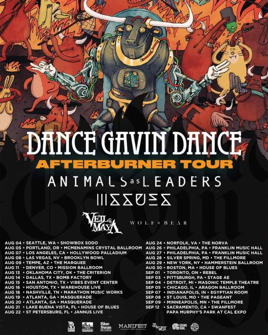 Dance Gavin Dance have announced the rescheduled dates for their tour with Animals As Leaders, Issues, and Veil Of Maya. Royal Coda will not be able to make the new dates, so Wolf & Bear will be performing instead.