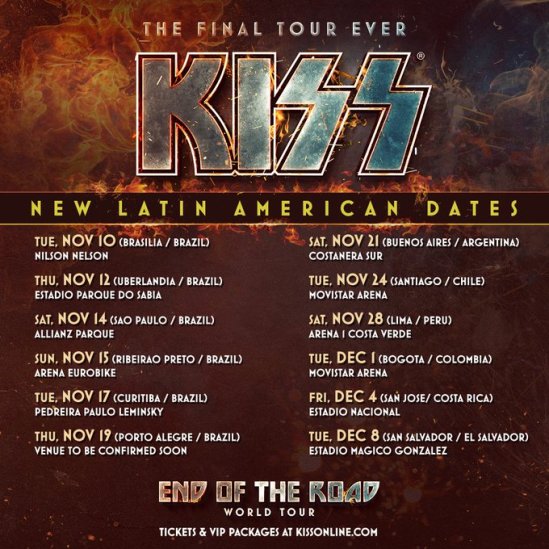 KISS have postponed their Latin American tour due to the coronavirus pandemic. The trek is now set to take place in November/December.