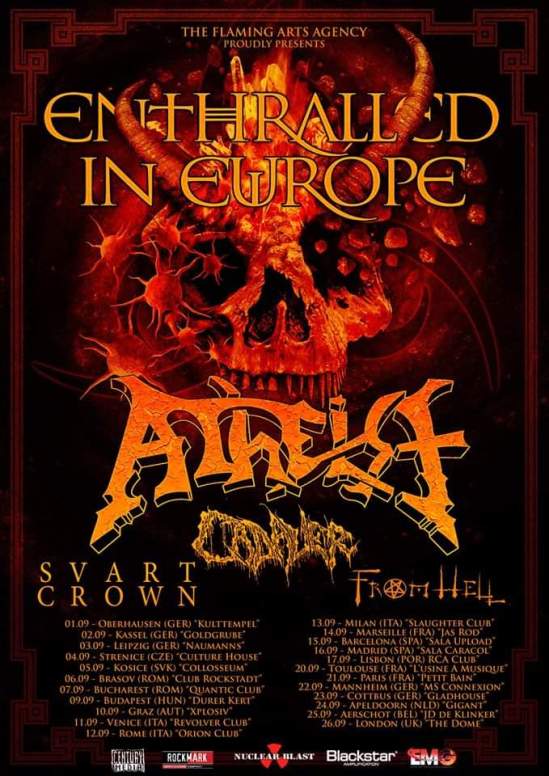 If the coronavirus pandemic doesn’t derail their plans, Atheist will be hitting the road on a headlining European/UK tour in September. Cadaver, Svart Crown, and From Hell will serve as support.