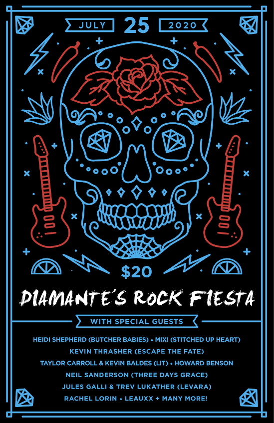 “My first livestream concert called DIAMANTE’S ROCK FIESTA is happening on July 25th @ 5p PST!! I’m going live from a super cool studio in Anaheim, CA that has video screens and other special effects so I can interact with all of you during the show!! My rock fiesta wouldn’t be complete without the help from a few of my special friends who are coming to hang and sing with me during the show…. and you never know, there may be a few more surprises! For tickets, limited-edition merch & VIP packages please visit www.store.thisisdiamante.com A portion of the proceeds from this event will go towards Sweet Relief Musicians Fund.”