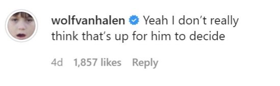 As previously reported, Van Halen frontman David Lee Roth recently said that he doesn’t know if Eddie Van Halen will ever tour again. The guitarist is rumored to be battling throat cancer and Roth said he doubts that he will want to “rally for the rigors of the road.” However, after the story was posted on Loudwire‘s Instagram account, Eddie’s son, Van Halen bassist Wolfgang Van Halen, offered the following comment: “Yeah I don’t really think that’s up for him to decide.” So at this point, we will just have to wait and see what happens.