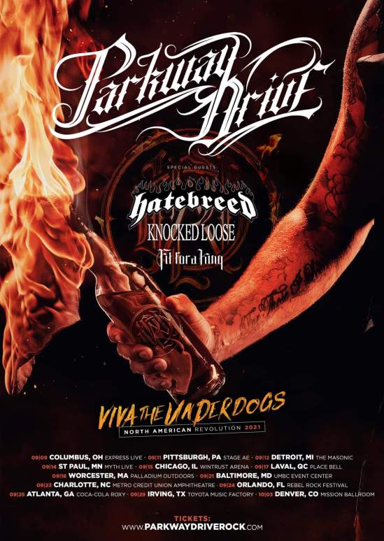 Parkway Drive have announced the rescheduled dates for their North American tour with Hatebreed, Knocked Loose, and Fit For A King. The trek is now set to take place in September 2021.