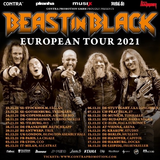 Beast In Black have announced a late 2021 European/UK tour. The band commented: