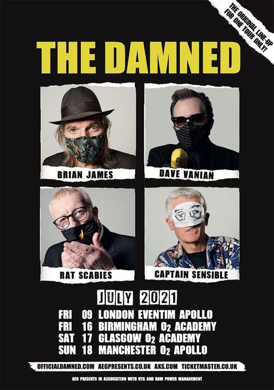 The Damned’s original lineup, Dave Vanian, Rat Scabies, Captain Sensible, and Brian James, will be reuniting for some UK shows next year. Here’s the dates: