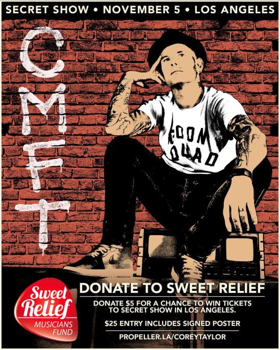 Corey Taylor (Slipknot, Stone Sour) will be playing a secret socially distanced show in Los Angeles, CA on November 5 to raise money for Sweet Relief’s COVID-19 fund. Fans that donate via Propeller will have a chance to win their way into the concert. Taylor commented: