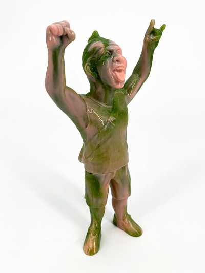 “The one and only “drunk animal – beer monster” AdamD hero toy is FINALLY here! Unfortunately for him it looks like he mixed a bit too much candy and beer in preparation for his big day. Cast in green GID (glow in the dark) with gold glitter marbled with bubblegum pink vinyl these are definitely sickly sweet. LIMIT 1 PER CUSTOMER. ANY ORDERS FOR MORE THAN 1 WILL BE CANCELED. $30 each…made in Japan. Not intended for children under 14 years old. NOTE: Each one is unique in it’s marbling and the images shown are for example only.”
