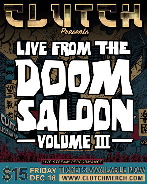 Clutch have revealed the details for their next virtual concert, “Live From The Doom Saloon – Volume III.” The streaming event will take place on December 18 and tickets can be purchased HERE. The set will also be available on demand until midnight EST on December 20. It’s also worth noting that show donations will benefit Save Our Stages. For now, fans can watch “Live From the Doom Saloon Vol 2.5” below. Neil Fallon commented: