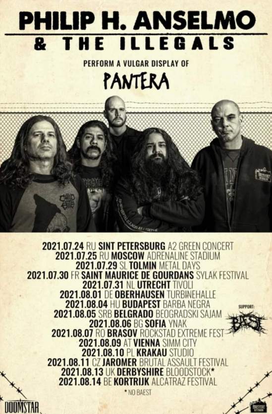 Philip H. Anselmo And The Illegals have announced a summer 2021 European tour with BAEST. The trek will find the band playing a set of Pantera songs. Here’s the dates: