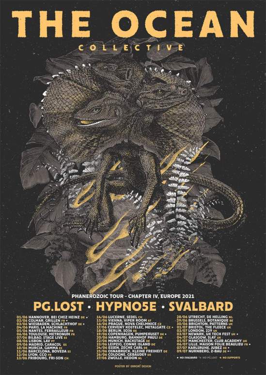 The Ocean have postponed their European/UK tour with pg.lost, Hypno5e, and Svalbard due to the coronavirus pandemic. The trek is now scheduled to take place in June/July 2021.