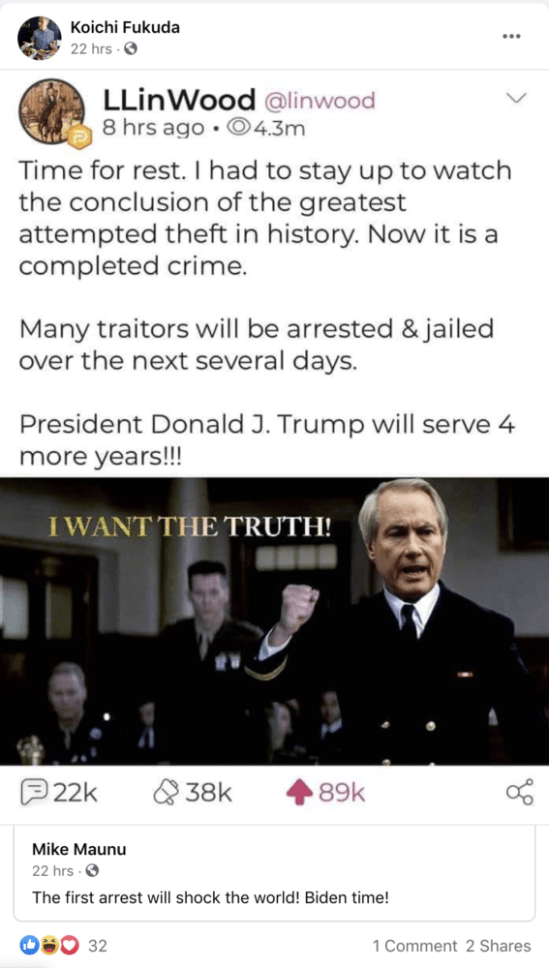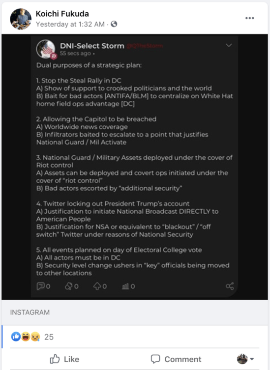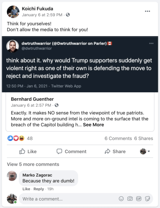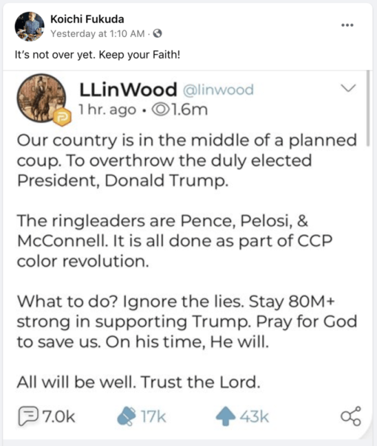 It looks like Static-X’s Koichi Fukuda is a Trump supporter, who has been sharing far-right conspiracy theories related to the treasonous insurrection at the U.S. Capitol. MetalSucks have shared some screenshots from the guitarist’s Facebook, which you can see below. It’s also worth noting that Koichi has sinced joined Parler.