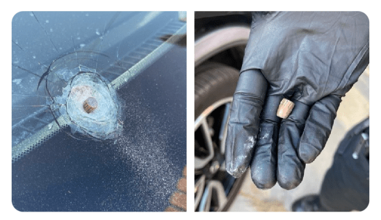 “Bullet hole in my windshield today, Los Angles Police Department asked me if I have any enemy’s I said “yes” and named 3 people. Let’s see where this investigation goes. LAPD said it looks like a 45 caliber, it’s a big bullet.”