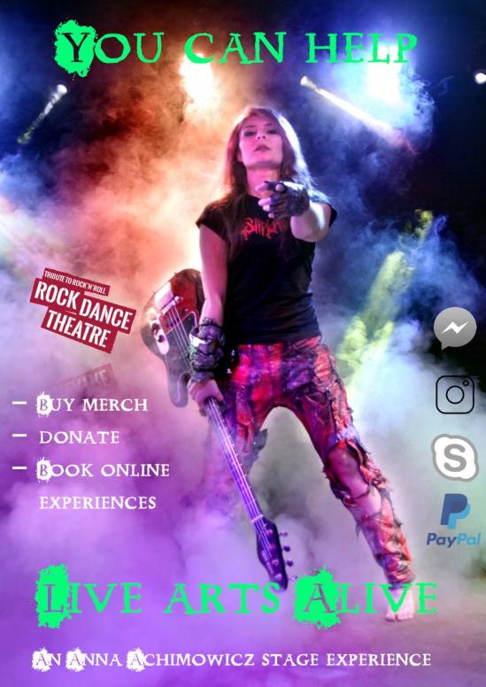 ACHIMOWICZ: There is indeed. Since we can’t perform live just yet, great help is getting our merch, buying in person online classes and experiences. There’s always a simple donation PayPal button when we put out a video or any other content out there, any sum is greatly appreciated. Rock Dance Theatre is freelance and independent, so we pretty much rely on the fans, viewers and attendants booking the workshops and classes, paying for the ticket to our shows etc. All of these formats have had to changed into the main virtual realm right now. Also what doesn’t require and financial investment yet is very helpful is simply sharing our Rock Dance Theatre art and content. Engaging in our social media, sharing links, videos etc. Getting those thumbs up, likes and follows going. All that helps us stay in the game and help us create more art with a wider reach for all of you. Until we can meet in person again, which with the vaccination process in motion now and plans and perspectives for the world opening up will hopefully be soon. Everything you need to know about Rock Dance Theatre is on our website and all of our @rockdancetheatre socials. Just reach out to us. Thank You!! I think this says it best: