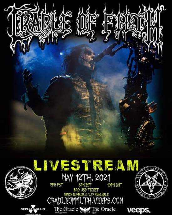 Cradle Of Filth’s livestream concert has been rescheduled for May 12. This news comes after the show was previously postponed two times due to the coronavirus pandemic. Tickets are available HERE.