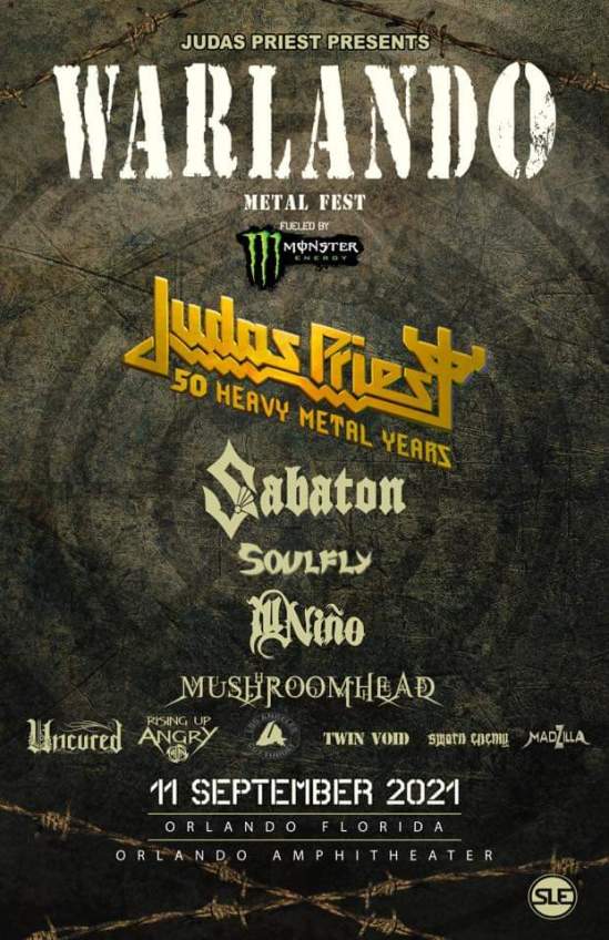 The lineup has been revealed for the 2021 Warlando Metal Fest. The event will take place on September 11 at the Orlando Amphitheater in Orlando, FL and it will feature: Judas Priest, Sabaton, Soulfly, Ill Niño, Mushroomhead, Uncured, Rising Up Angry, Cutthroat, Twin Void, Sworn Enemy, and Madzilla.